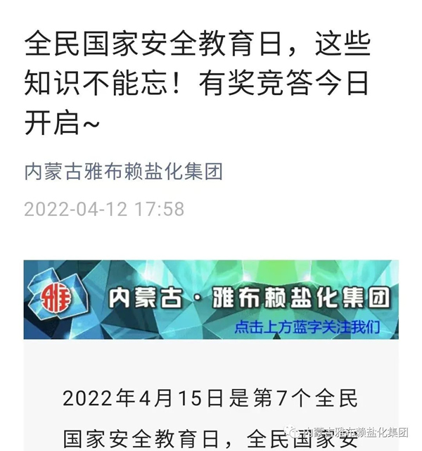 今年4月15日是第七个全民国家安全教育日,为进一步增强公司全体员工国家安全意识,营造维护国家安全的浓厚法治氛围。连日来,安博开展了形式多样的“国家安全教育日”宣传活动,使“维护国家安全人人有责”的意识深入人心。 为确保活动取得实效,公司围绕“树牢总体国家安全观,感悟新时代国家安全成就,为迎接党的二十大胜利召开营造良好氛围”这一主题,利用公司微信公众号、微信群、网站、横幅标语、宣传挂图等多种宣传形式进行了广泛深入的国家安全宣传教育活动。并组织党员、员工积极参加阿拉善盟“全民国家安全教育日”网上知识竞答活动,引导党员员工树立总体国家安全观,提升自身安全意识和保密意识。 集团公司各党支部结合4月份主题党日活动,通过专题学习、交流讨论、现场宣讲等各种方式认真学习国家司法部、全国普法办关于“第七个全民国家安全教育日”宣传活动的部署要求和《习近平论坚持总体国家安全观》《中华人民共和国国家安全法》等政策法规,并组织党员员工观看国家安全纪录片——《护航之道—总体国家安全观纵横》,切实提升了党员员工自觉维护国家安全的意识和能力。 通过此次宣传教育活动,进一步增强了全体员工的国家安全意识和爱国热情,强化了员工履行维护国家安全的义务和责任。大家纷纷表示,要不断提高自己的防范意识,积极支持、配合、协助专门机关共同做好维护国家安全的工作,为保卫国家安全,维护社会稳定、构建和谐企业贡献自己的一份力量。 |